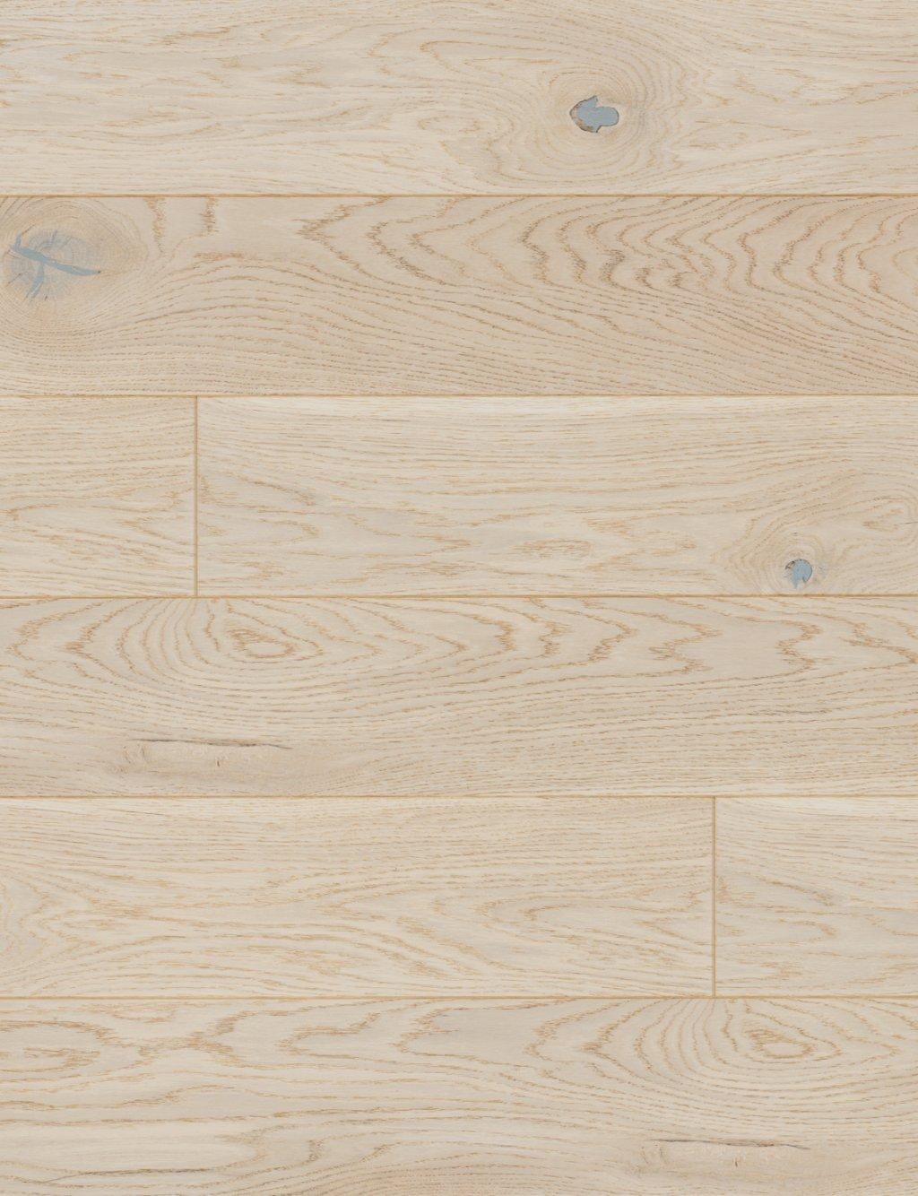Powierzchnia cechuje się charakterystycznym dla dębu drewnem bielu i dużymi sękami. Struktura drewna zaznaczona dzięki procesowi szczotkowania. Dodatkowo deska pokryta warstwą bejcy kremowej. Podłoga odznacza się umiarkowaną zmiennością odcieni pomiędzy deskami.